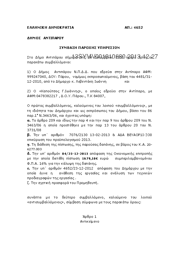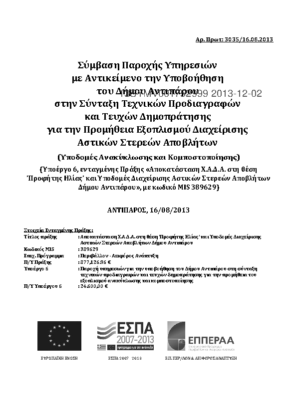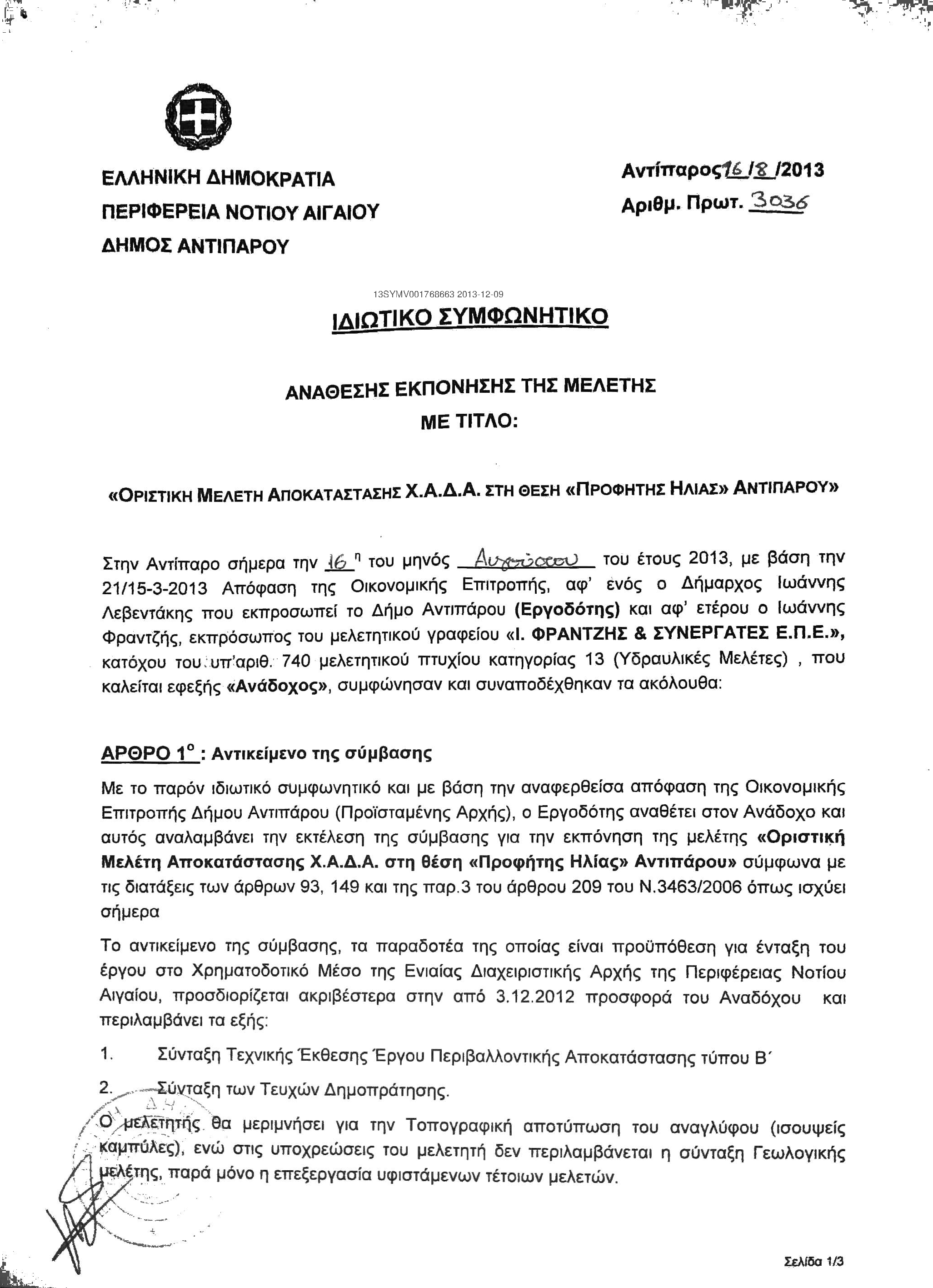 4. Παροχή Υπηρεσιών με Αντικείμενο την Υποβοήθηση του Δήμου Αντιπάρου στην Σύνταξη Τεχνικών Προδιαγραφώ