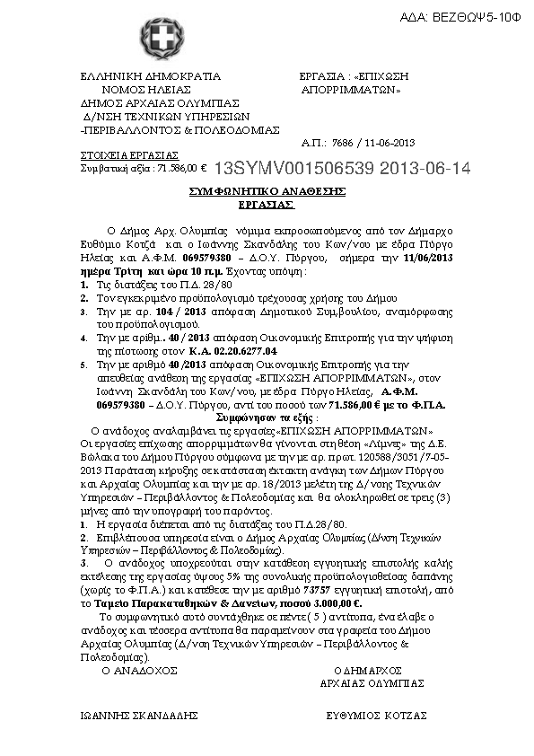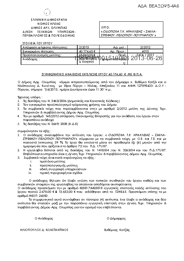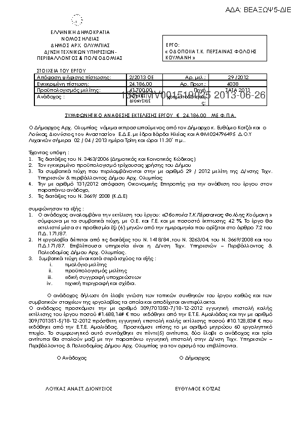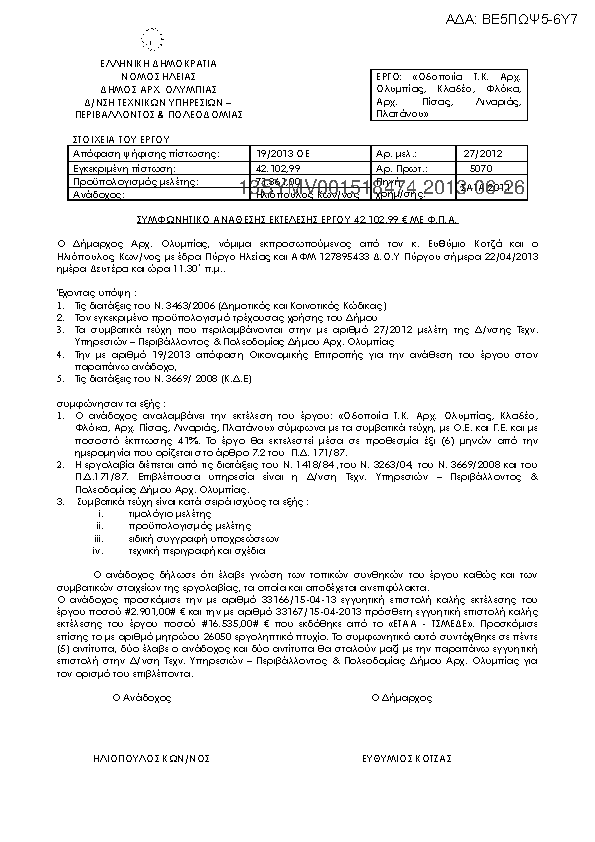 6. ΟΔΟΠΟΙΙΑ ΤΚ ΑΡΧ. ΟΛΥΜΠΙΑΣ, ΚΛΑΔΕΟ, ΦΛΟΚΑ, ΑΡΧ. ΠΙΣΑΣ, ΛΙΝΑΡΙΑΣ, ΠΛΑΤΑΝΟΥ