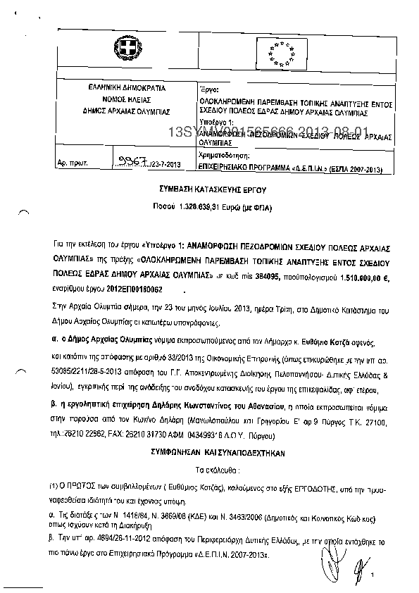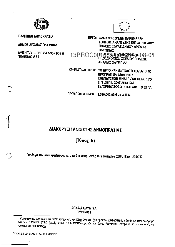 1. ΔΙΑΚΗΡΥΞΗ ΑΝΟΙΚΤΗΣ ΔΗΜΟΠΡΑΣΙΑΣ ΟΛΟΚΛΗΡΩΜΕΝΗ ΠΑΡΕΜΒΑΣΗ ΕΝΤΟΣ ΣΧΕΔΙΟΥ ΠΟΛΗΣ ΑΡΧ ΟΛΥΜΠΙΑΣ ΥΠΟΕΡΓΟ 1
