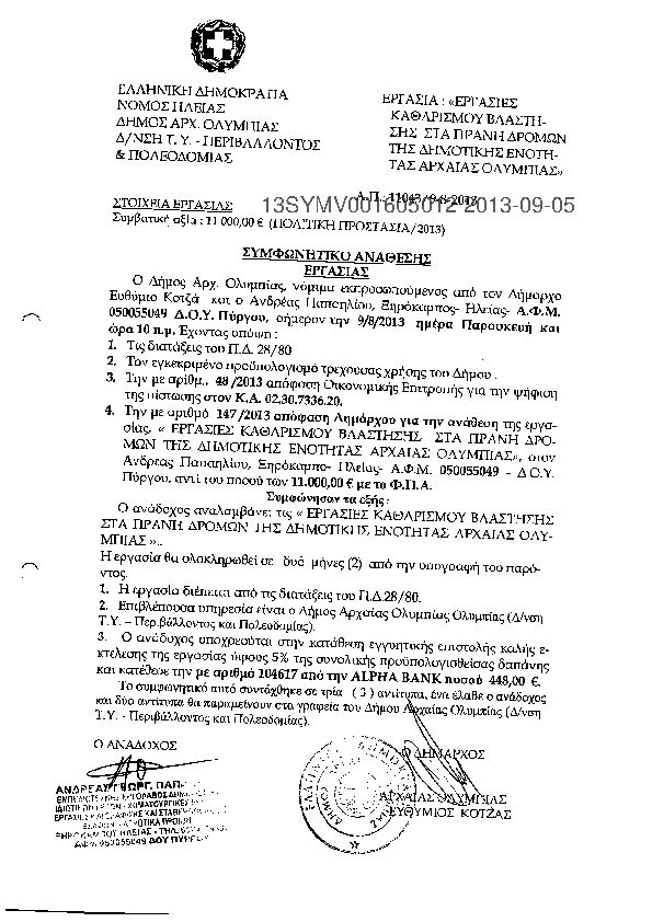 3. ΕΡΓΑΣΙΕΣ ΚΑΘΑΡΙΣΜΟΥ ΒΛΑΣΤΗΣΗΣ ΣΤΑ ΠΡΑΝΗ ΤΩΝ ΔΡΟΜΩΝ ΤΗΣ ΔΕ ΑΡΧΑΙΑΣ ΟΛΥΜΠΙΑΣ