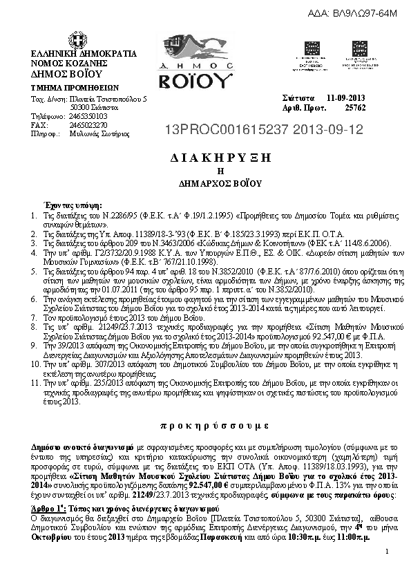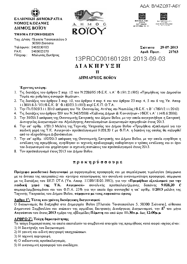 Αναζήτηση σε προκηρύξεις και συμβάσεις για: