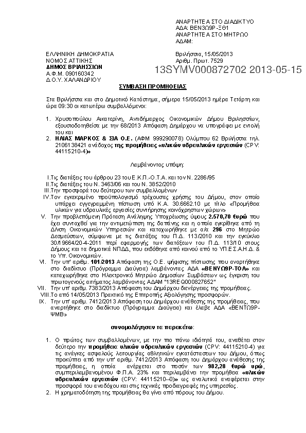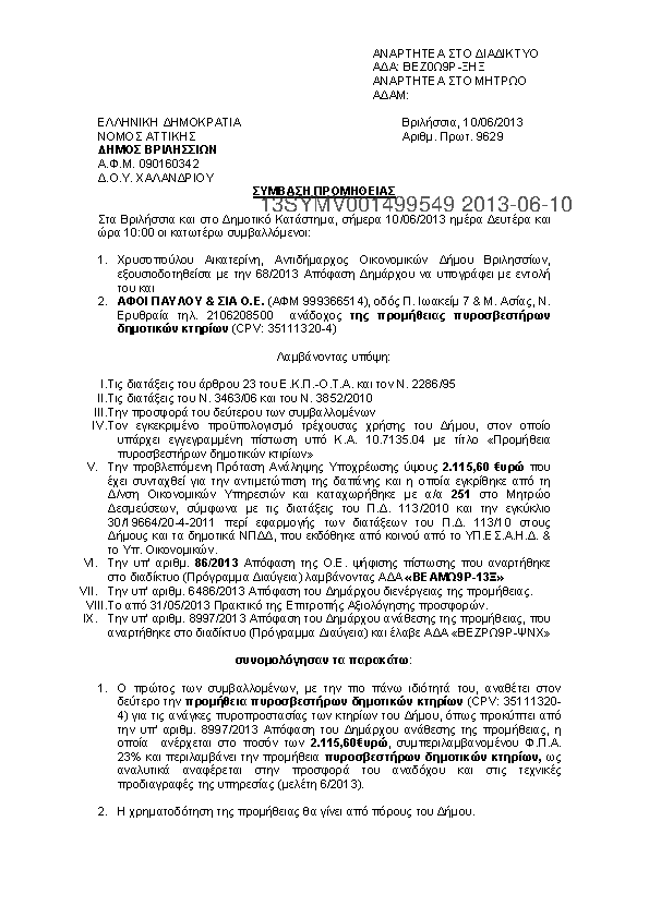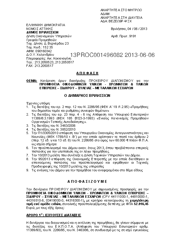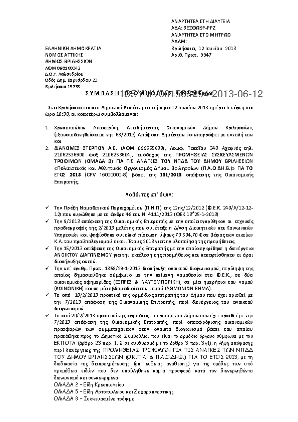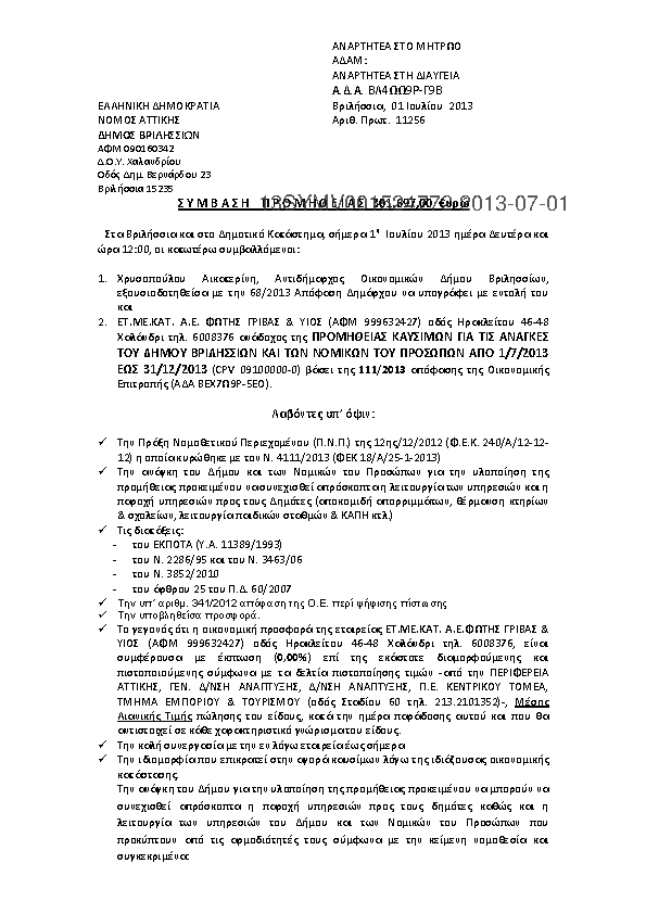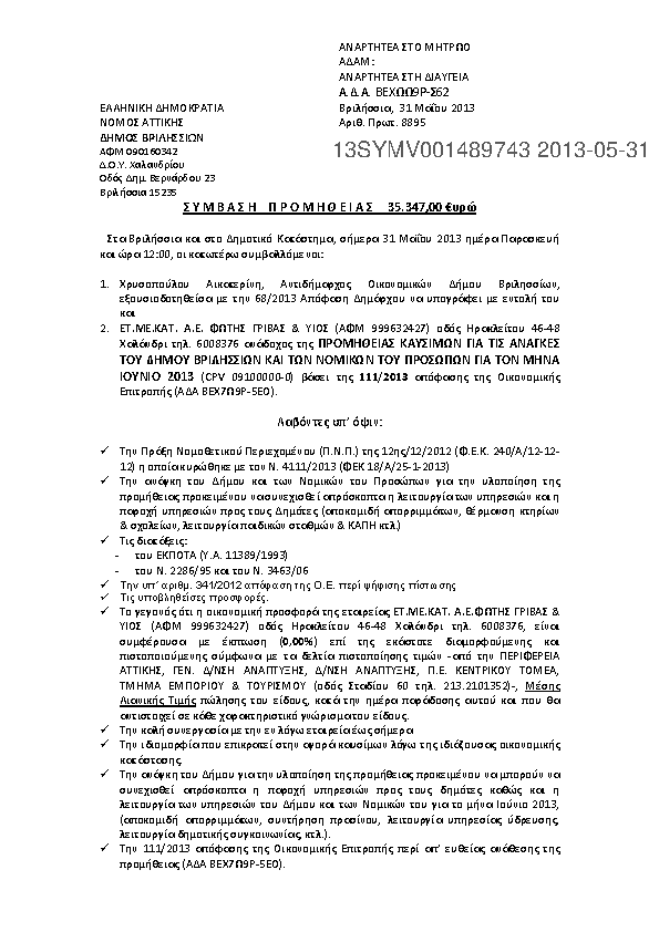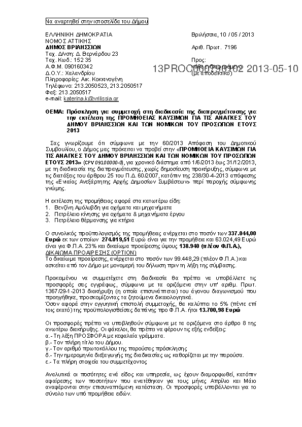 4. ΠΡΟΜΗΘΕΙΑ ΚΑΥΣΙΜΩΝ ΓΙΑ ΤΙΣ ΑΝΑΓΚΕΣ ΤΟΥ ΔΗΜΟΥ ΒΡΙΛΗΣΣΙΩΝ ΚΑΙ ΤΩΝ ΝΟΜΙΚΩΝ ΤΟΥ ΠΡΟΣΩΠΩΝ ΕΤΟΥΣ 2013