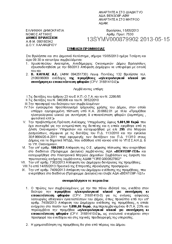 Αναζήτηση σε προκηρύξεις και συμβάσεις για: