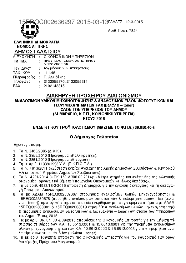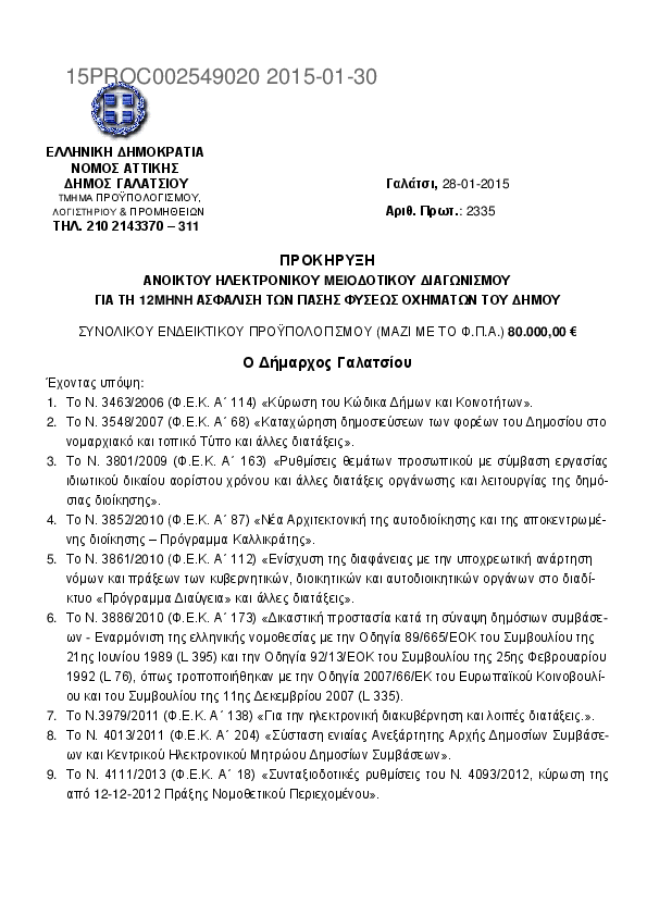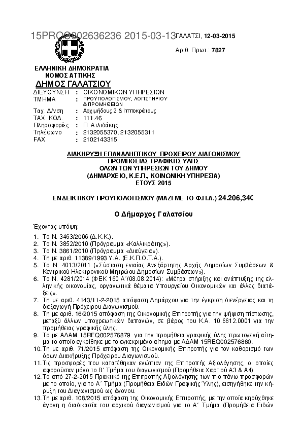 Αναζήτηση σε προκηρύξεις και συμβάσεις για: