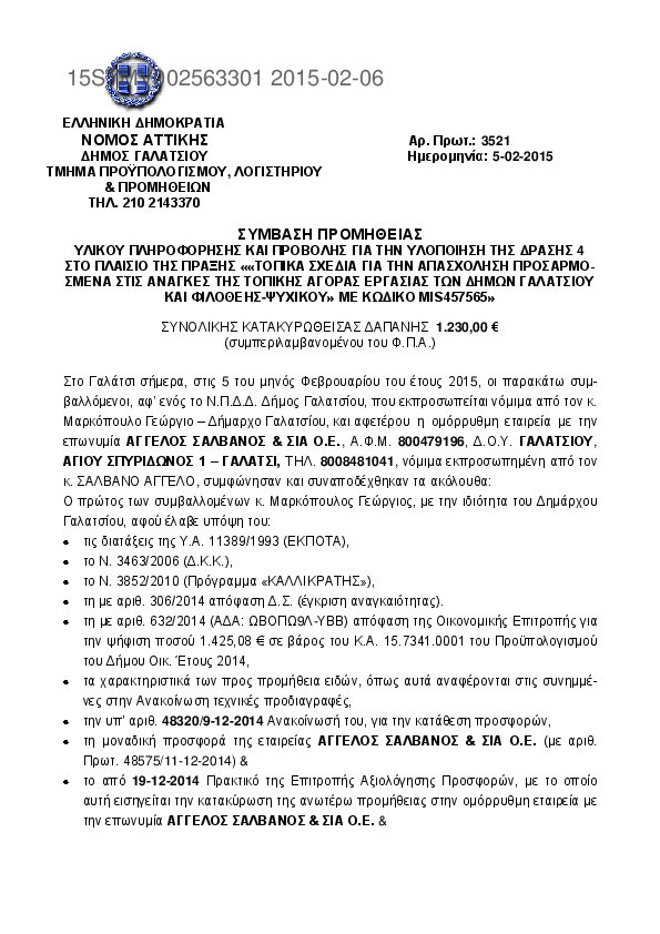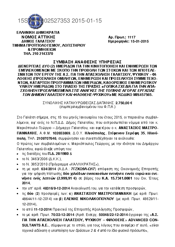 2. ΣΥΜΒΑΣΗ ΑΝΑΘΕΣΗΣ ΥΠΗΡΕΣΙΑΣ ΔΙΕΝΕΡΓΕΙΑΣ ΔΥΟ (2) ΗΜΕΡΙΔΩΝ
