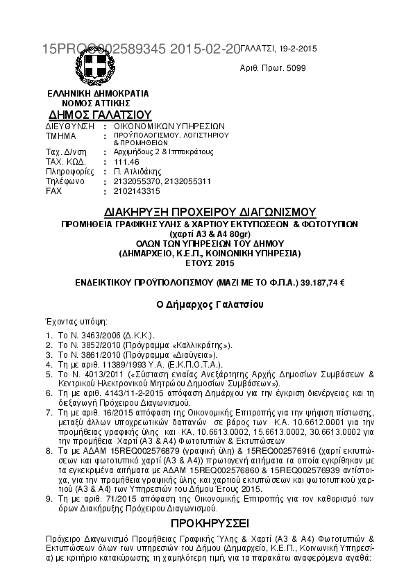 10. ΔΙΑΚΗΡΥΞΗ ΠΡΟΜΗΘΕΙΑΣ ΓΡΑΦΙΚΗΣ ΥΛΗΣ