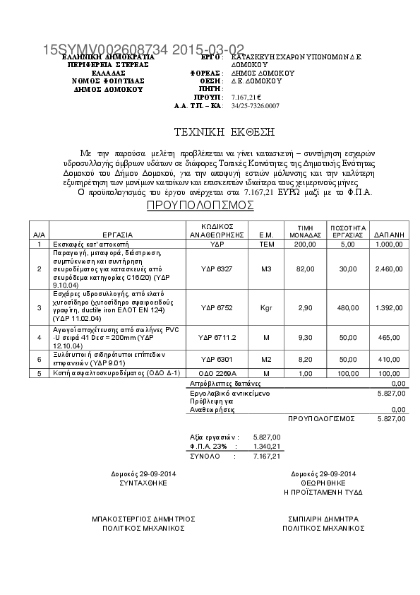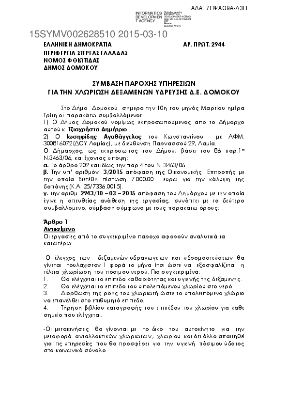 9. ΧΛΩΡΙΩΣΗ ΔΕΞΑΜΕΝΩΝ ΥΔΡΕΥΣΗΣ Δ.Ε. ΔΟΜΟΚΟΥ