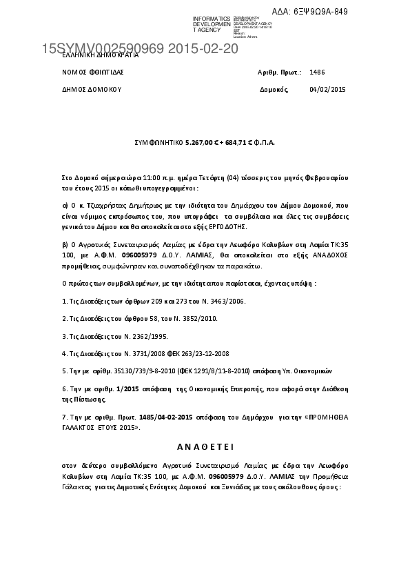 Αναζήτηση σε προκηρύξεις και συμβάσεις για:
