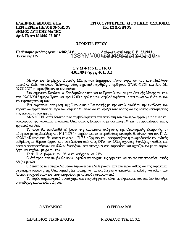 5. ΣΥΝΤΗΡΗΣΗ ΑΓΡΟΤΙΚΗΣ ΟΔΟΠΟΙΙΑΣ Τ.Κ.ΕΞΩΧΩΡΙΟΥ