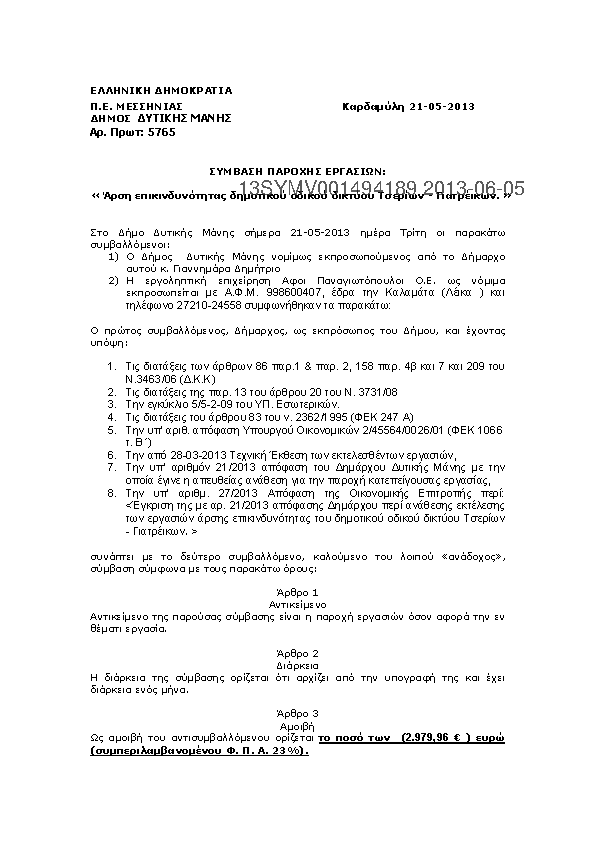 Αναζήτηση σε προκηρύξεις και συμβάσεις για: