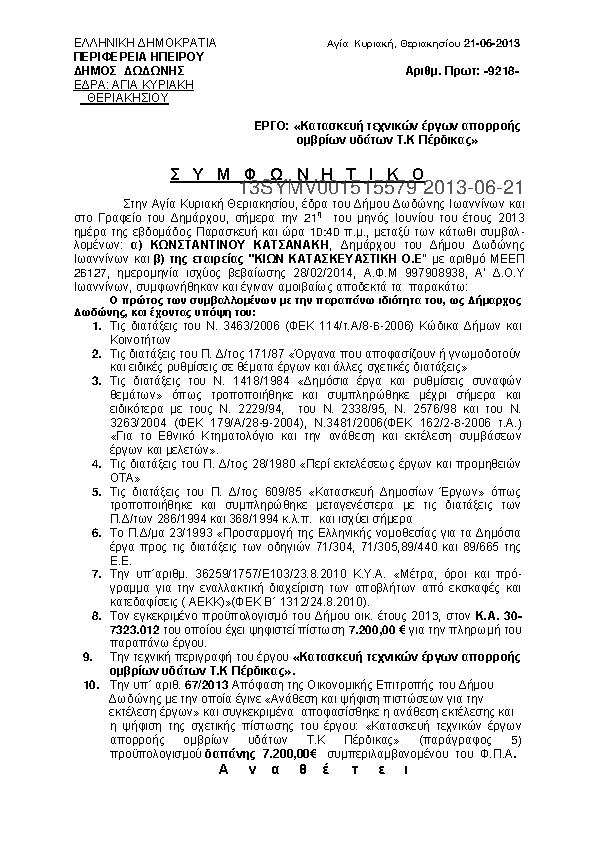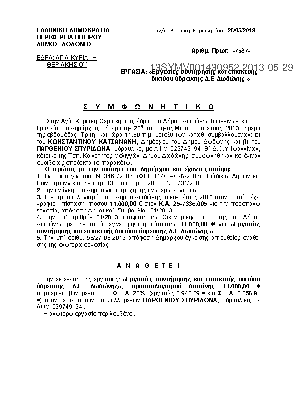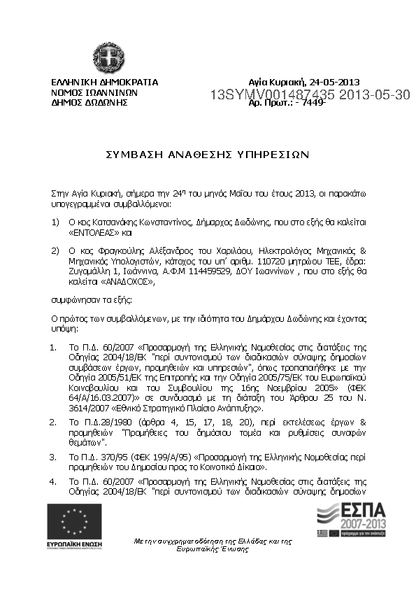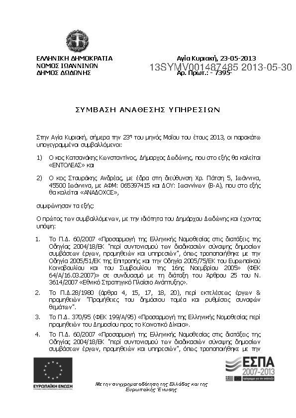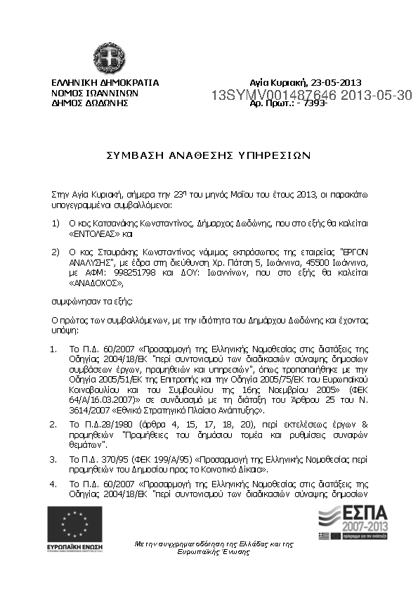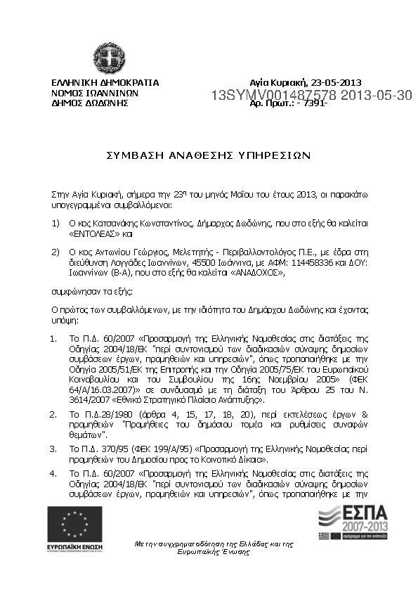 7. Υπηρεσίες ΣΥΜΒΟΎΛΟΥ για την υποστήριξη του Δήμου Δωδώνης και την προετοιμασία του φακέλου Διαχειρηστ