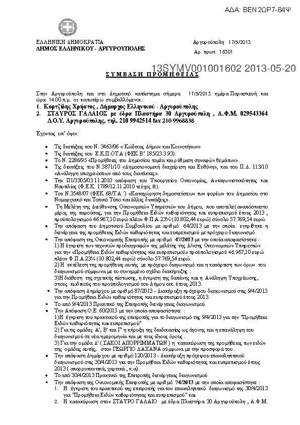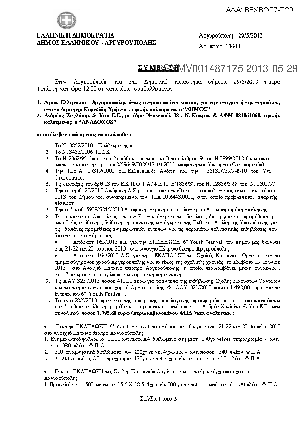 Αναζήτηση σε προκηρύξεις και συμβάσεις για: