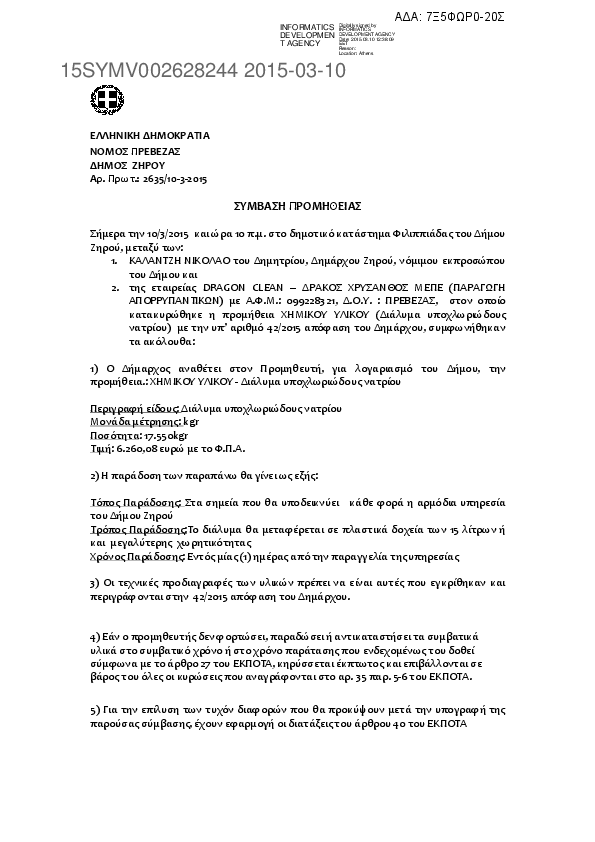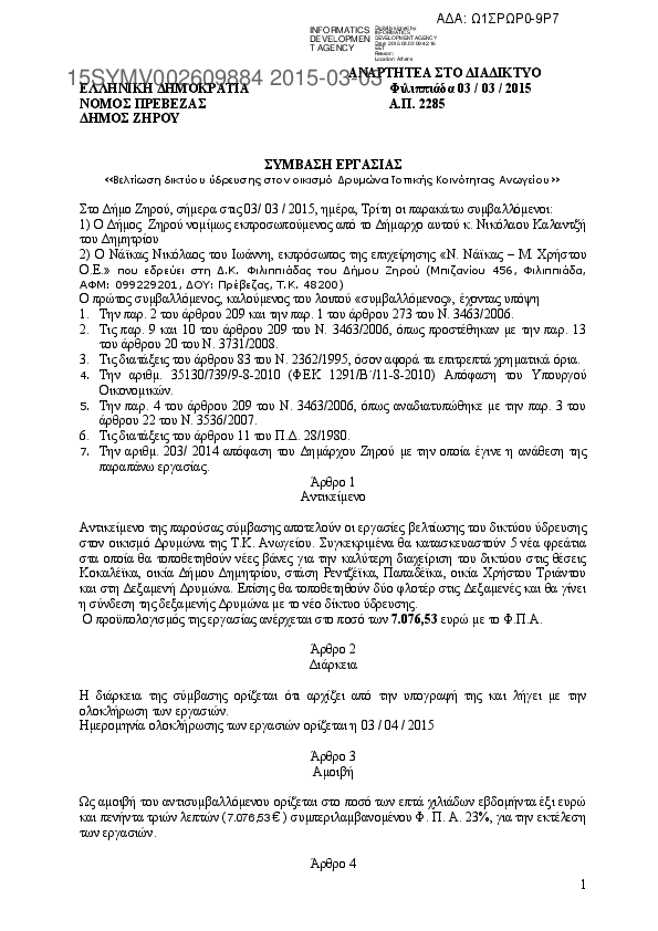 5. ΣΥΜΒΑΣΗ ΕΡΓΑΣΙΑΣ «Βελτίωση δικτύου ύδρευσης στον οικισμό Δρυμώνα Τοπικής Κοινότητας Ανωγείου»