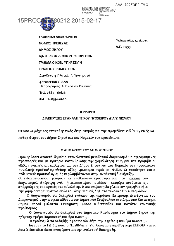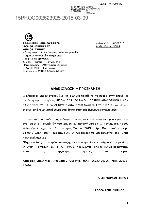 3. ΑΝΑΚΟΙΝ.- ΠΡΟΣΚΛ. ΓΙΑ ΠΡΟΜΗΘΕΙΑ ΤΡΟΦΙΜΩΝ ΤΟΥ Δ. ΖΗΡΟΥΘ ΚΑΙ ΤΟΥ ΝΠΔΔ ΟΡΓ. ΔΗΜ. ΔΙΚΑΙΟΥ Δ. ΖΗΡΟΥ