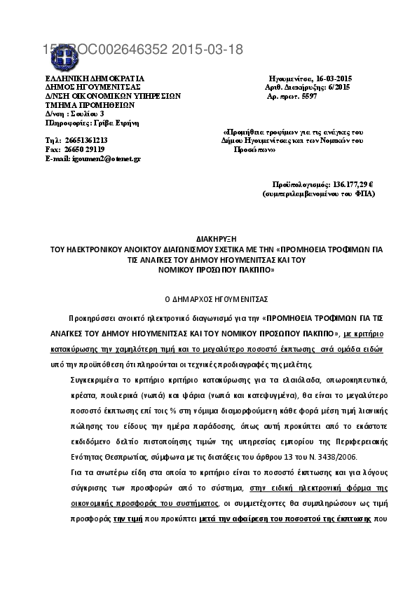 6. Επιλογή εταιρείας ταχυμεταφορών επιστολών και εγγράφων έτους 2015