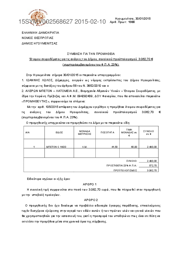 3. Προμήθεια έτοιμου σκυροδέματος για τις ανάγκες του Δήμου Ηγουμενίτσας.