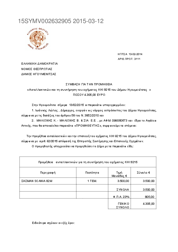 10. Προμήθεια ανταλλακτικών για την συντήρηση του οχήματος ΚΗΙ 9215