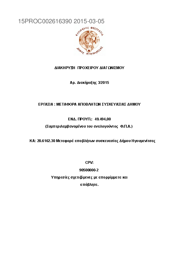 Αναζήτηση σε προκηρύξεις και συμβάσεις για:
