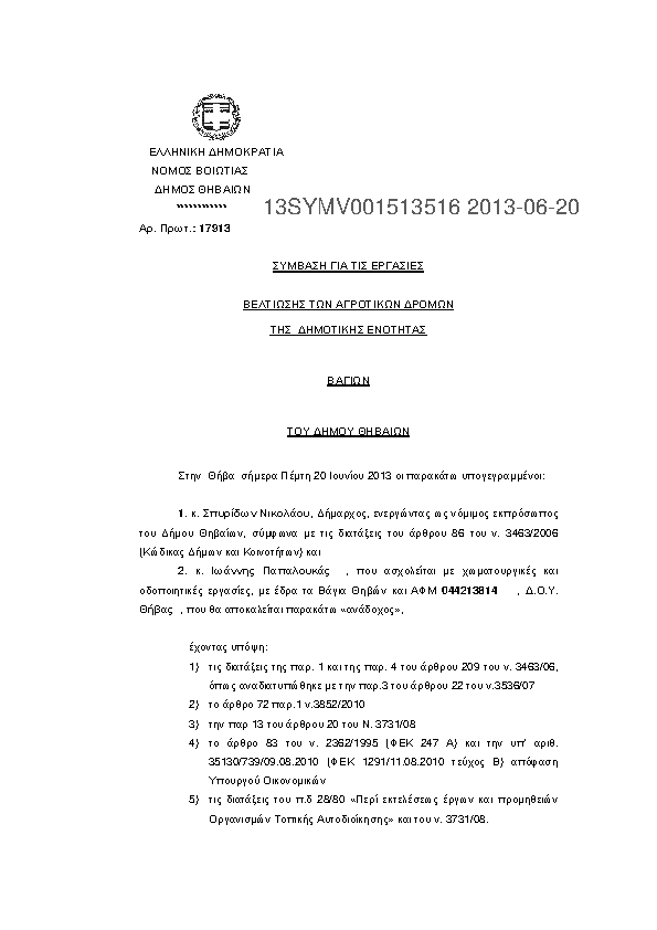 1. ΣΥΜΒΑΣΗ ΚΑΤΑΣΚΕΥΗΣ ΕΡΓΟΥ ΑΞΙΟΠΟΙΗΣΗ ΥΔΡΕΥΤΙΚΗΣ ΓΕΩΤΡΗΣΗΣ ΑΓ. ΣΩΤΗΡΑΣ