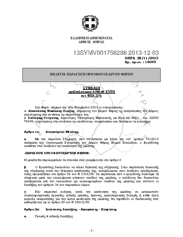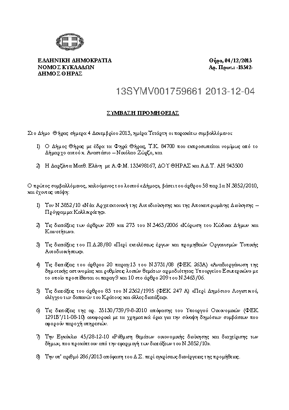 6. ΣΥΜΒΑΣΗ ΓΙΑ ΤΗΝ ΠΡΟΜΗΘΕΙΑ ΥΛΙΚΩΝ ΓΙΑ ΤΟ ΤΜΗΜΑ ΠΟΛΙΤΙΚΗΣ ΠΡΟΣΤΑΣΙΑΣ ΤΟΥ ΔΗΜΟΥ ΘΗΡΑΣ
