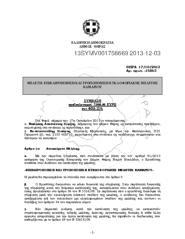 3. ΕΠΙΚΑΙΡΟΠΟΙΗΣΗ ΚΑΙ ΤΡΟΠΟΠΟΙΗΣΗ ΚΥΚΛΟΦΟΡΙΑΚΗΣ ΜΕΛΕΤΗΣ ΚΑΜΑΡΙΟΥ
