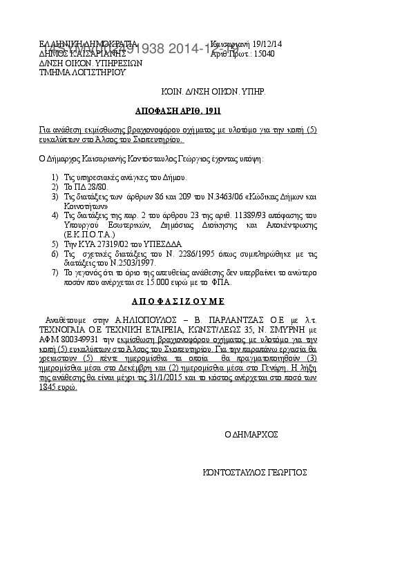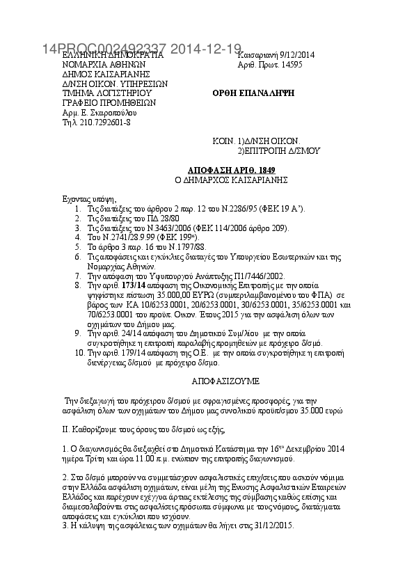 4. ΔΙΑΚΗΡΥΞΗ Δ/ΣΜΟΥ ΓΙΑ ΑΣΦΑΛΕΙΕΣ ΟΧΗΜΑΤΩΝ ΤΟΥ ΔΗΜΟΥ ΜΑΣ