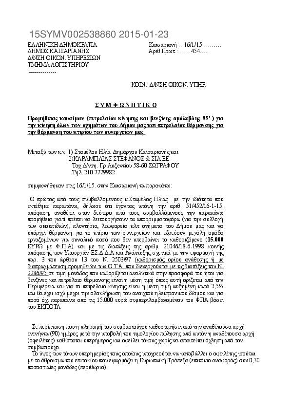 10. ΣΥΜΦΩΝΗΤΙΚΟ ΠΡΟΜΗΘΕΙΑΣ ΚΑΥΣΙΜΩΝ 2015
