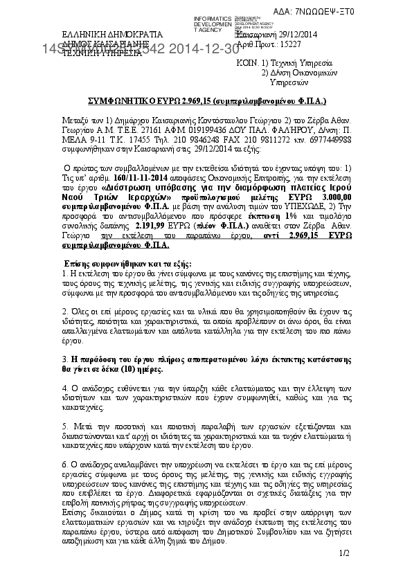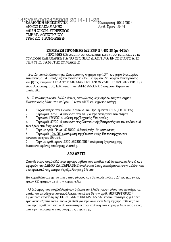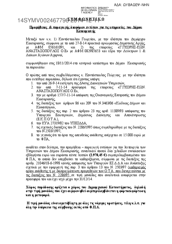 3. ΣΥΜΦΩΝΗΤΙΚΟ ΠΡΟΜΗΘΕΙΑΣ & ΠΑΡΑΓΩΓΗΣ ΕΝΤΥΠΩΝ ΓΙΑ ΤΙΣ ΥΠΗΡΕΣΙΕΣ ΤΟΥ Δ.ΚΑΙΣΑΡΙΑΝΗΣ
