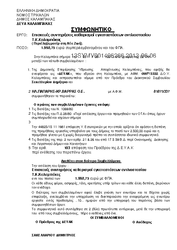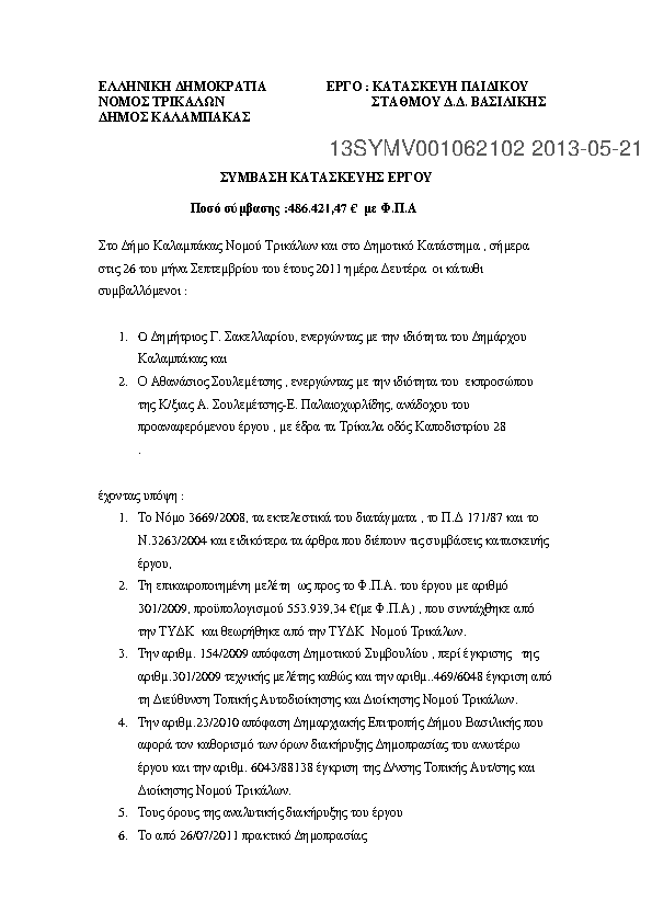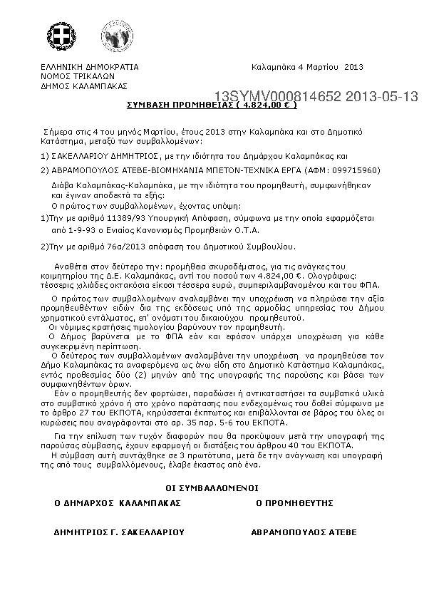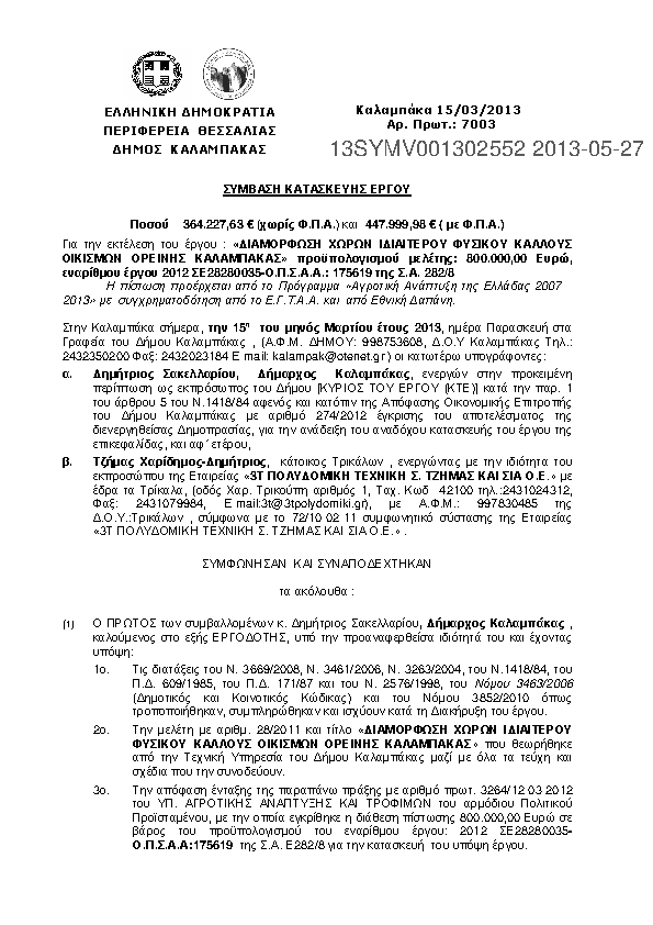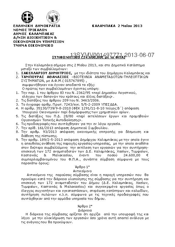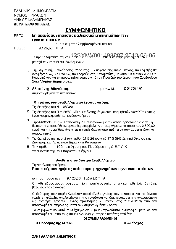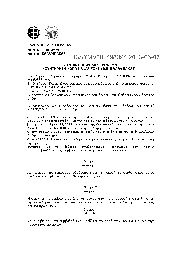 3. Σύμβαση παροχής εργασιών ΣΥΝΤΗΡΗΣΗ ΧΩΡΩΝ ΑΝΑΨΥΧΗΣ ΔΕ ΚΑΛΑΜΠΑΚΑΣ