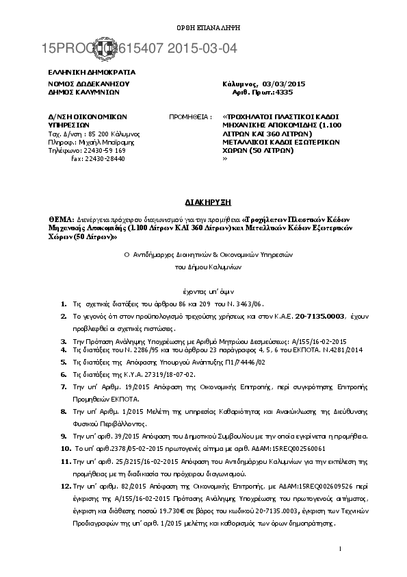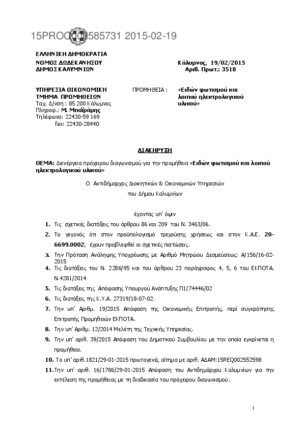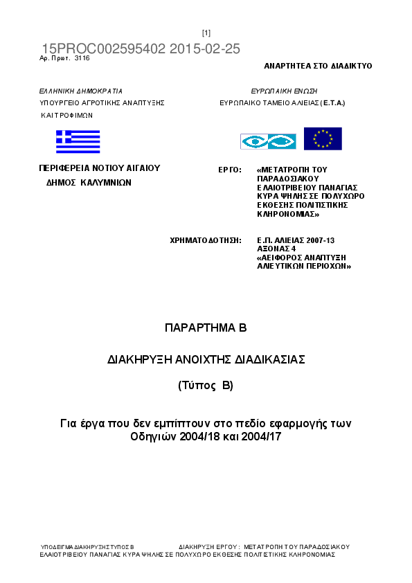 Αναζήτηση σε προκηρύξεις και συμβάσεις για: