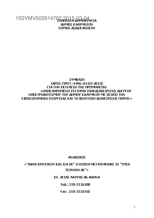 9. Ολοκληρωμένο Σύστημα Τηλεδιαχείρισης Δικτύου Ηλεκτροφωτισμού του Δήμου Καλύμνου με Σκοπό την Εξοικον
