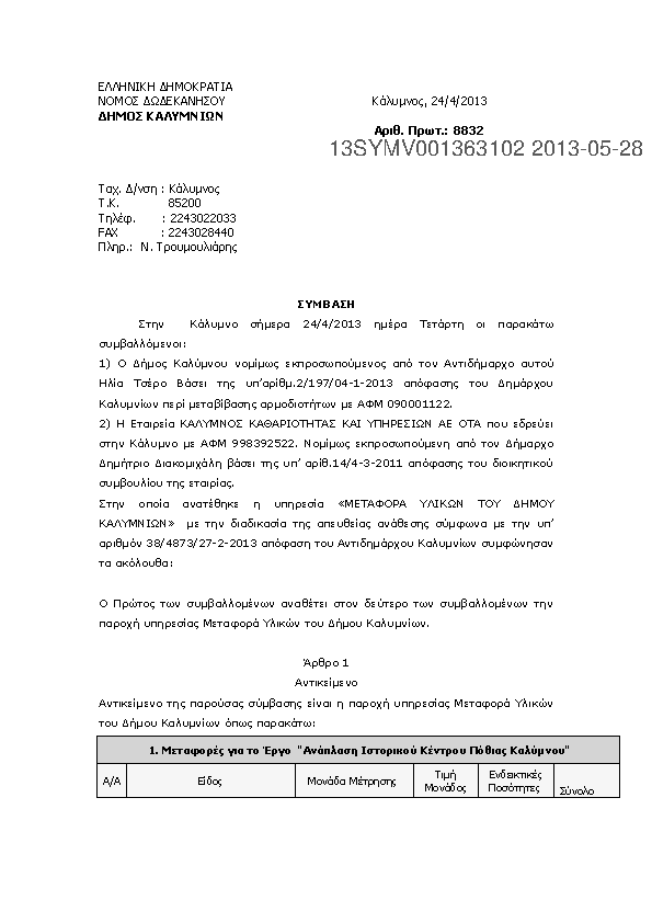 8. ΜΕΤΑΦΟΡΕΣ ΥΛΙΚΩΝ ΤΟΥ ΔΗΜΟΥ ΚΑΛΥΜΝΙΩΝ