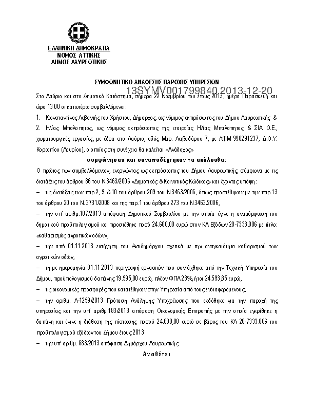2. ΣΥΜΒΑΣΗ ΑΝΑΘΕΣΗΣ ΕΡΓΑΣΙΩΝ ΔΙΑΝΟΙΞΗΣ ΟΡΥΓΜΑΤΩΝ ΔΙΚΤΥΩΝ ΥΔΡΕΥΣΗΣ ΔΗΜΟΥ ΛΑΥΡΕΩΤΙΚΗΣ