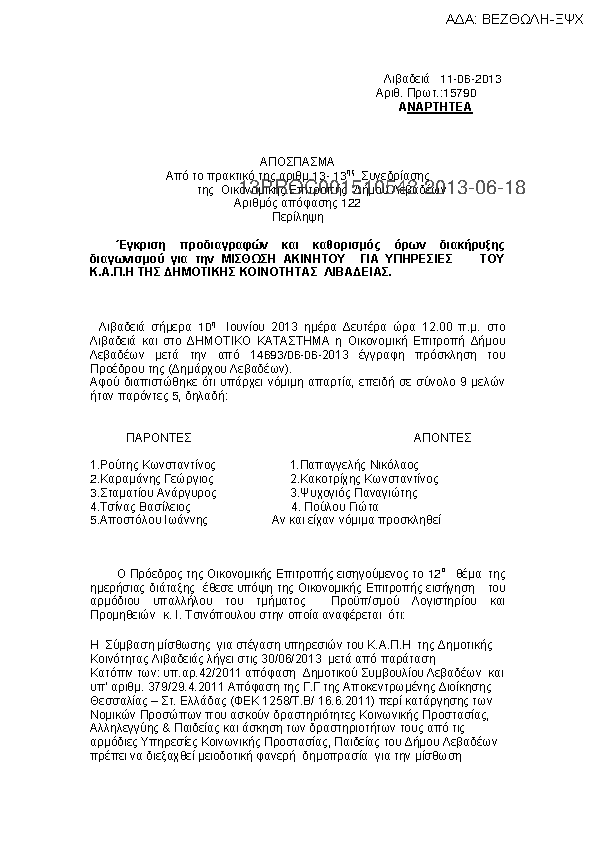 3. Έγκριση προδιαγραφών και καθορισμός όρων διακήρυξης διαγωνισμού για την ΜΙΣΘΩΣΗ ΑΚΙΝΗΤΟΥ ΓΙΑ ΥΠΗΡΕΣΙΕΣ ΤΟΥ Κ.Α.Π.Η ΤΗΣ ΔΗΜΟΤΙΚΗΣ ΚΟΙΝΟΤΗΤΑΣ ΛΙΒΑΔΕΙΑΣ