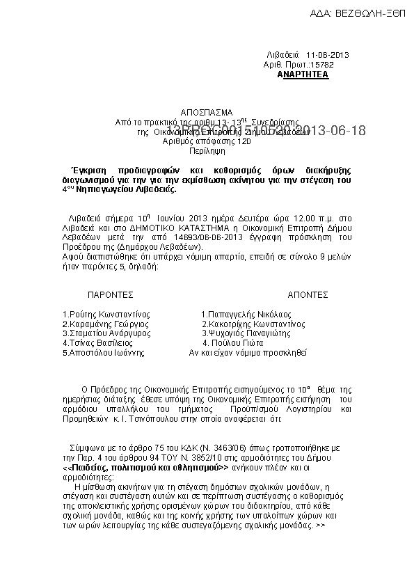 5. Έγκριση προδιαγραφών και καθορισμός όρων διακήρυξης διαγωνισμού για την εκμίσθωση αιθουσών για την στέγαση του 2ου Δημοτικού Σχολείου Λιβαδειάς