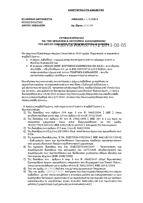 8. ΕΡΓΑΣΙΑ ΓΙΑ ΤΗΝ ΟΡΓΑΝΩΣΗ & ΛΕΙΤΟΥΡΓΙΑ ΚΑΤΑΣΚΗΝΩΣΗΣ ΤΟΥ ΔΗΜΟΥ ΛΕΒΑΔΕΩΝ ΣΤΗ ΘΕΣΗ ΠΑΛΙΟΜΗΛΙ