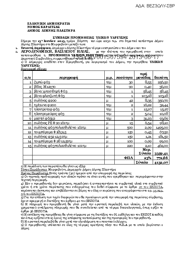 3. ΣΥΜΒΑΣΗ ΠΡΟΜΗΘΕΙΑΣ ΥΛΙΚΩΝ ΑΡΔΕΥΣΗΣ