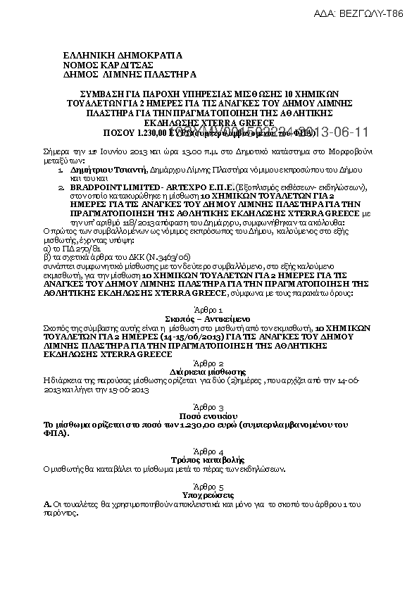 1. Ενοικίαση χημικών τουαλετών για την πραγματοποίηση της αθλητικής εκδήλωσης XTERRA GREECE