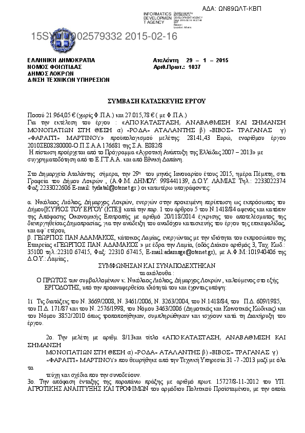 9. ΑΠΟΚΑΤΑΣΤΑΣΗ, ΑΝΑΒΑΘΜΙΣΗ ΚΑΙ ΣΗΜΑΝΣΗ ΜΟΝΟΠΑΤΙΩΝ ΣΤΗ ΘΕΣΗ α) «ΡΟΔΑ» ΑΤΑΛΑΝΤΗΣ β) «ΒΙΒΟΣ» ΤΡΑΓΑΝΑΣ γ)