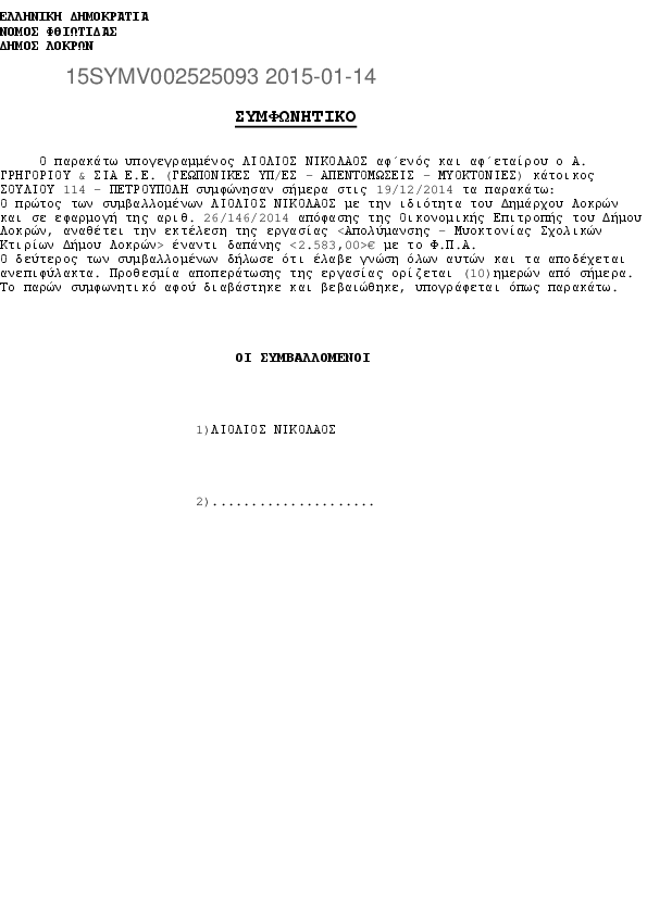 8. "ΠΑΡΟΧΗ ΕΡΓΑΣΙΩΝ ΑΜΟΙΒΗΣ ΜΗΧΑΝΙΚΟΥ ΓΙΑ ΔΙΑΔΙΚΑΣΙΑ ΝΟΜΙΜΟΠΟΙΗΣΗΣ ΑΥΘΑΙΡΕΤΩΝ ΓΥΜΝΑΣΙΟΥ – ΛΥΚΕΙΟΥ ΚΑΙ 1