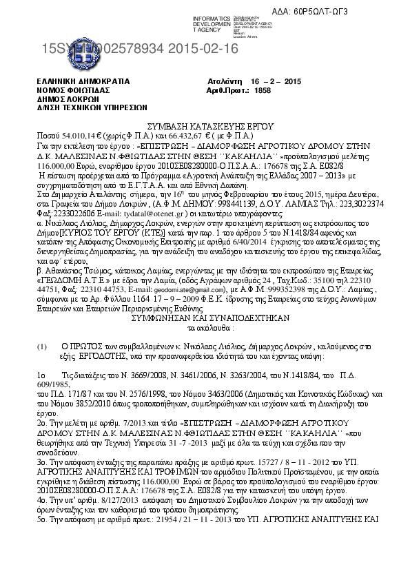 10. ΕΠΙΣΤΡΩΣΗ – ΔΙΑΜΟΡΦΩΣΗ ΑΓΡΟΤΙΚΟΥ ΔΡΟΜΟΥ ΣΤΗΝ Δ.Κ. ΜΑΛΕΣΙΝΑΣ N.ΦΘΙΩΤΙΔΑΣ ΣΤΗΝ ΘΕΣΗ ΄΄ΚΑΚΑΗΛΙΑ΄΄