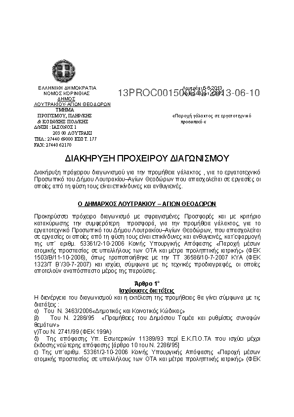 1. ΠΑΡΟΧΗ ΓΑΛΑΚΤΟΣ ΣΕ ΕΡΓΑΤΟΤΕΧΝΙΚΟ ΠΡΟΣΩΠΙΚΟ