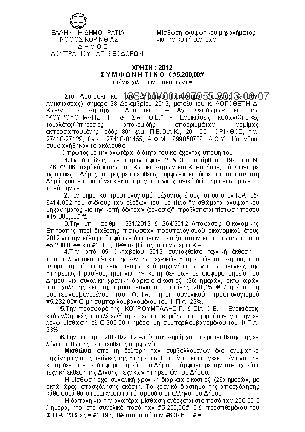 6. ΜΙΣΘΩΣΗ ΑΝΥΨΩΤΙΚΟΥ ΜΗΧΑΝΗΜΑΤΟΣ ΓΙΑ ΤΗ ΚΟΠΗ ΔΕΝΤΡΩΝ