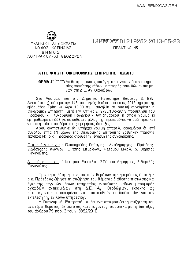 2. ΕΝΟΙΚΙΑΣΗ ΚΑΔΩΝ ΜΕΤΑΦΟΡΑΣ ΟΓΚΩΔΩΝ ΑΝΤΙΚΕΙΜΕΝΩΝ ΣΤΗ Δ.Ε. ΑΓ. ΘΕΟΔΩΡΩΝ