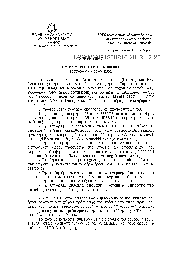 7. ''ΔΙΑΠΛΑΤΥΝΣΗ ΧΩΡΟΥ ΠΡΟΣΒΑΣΗΣ ΣΤΟ ΥΠΟΓΕΙΟ ΤΩΝ ΑΠΟΔΥΤΗΡΙΩΝ ΤΟΥ ΔΗΜΟΤ. ΚΟΛΥΜΒΗΤΗΡΙΟΥ ΛΟΥΤΡΑΚΙΟΥ ''