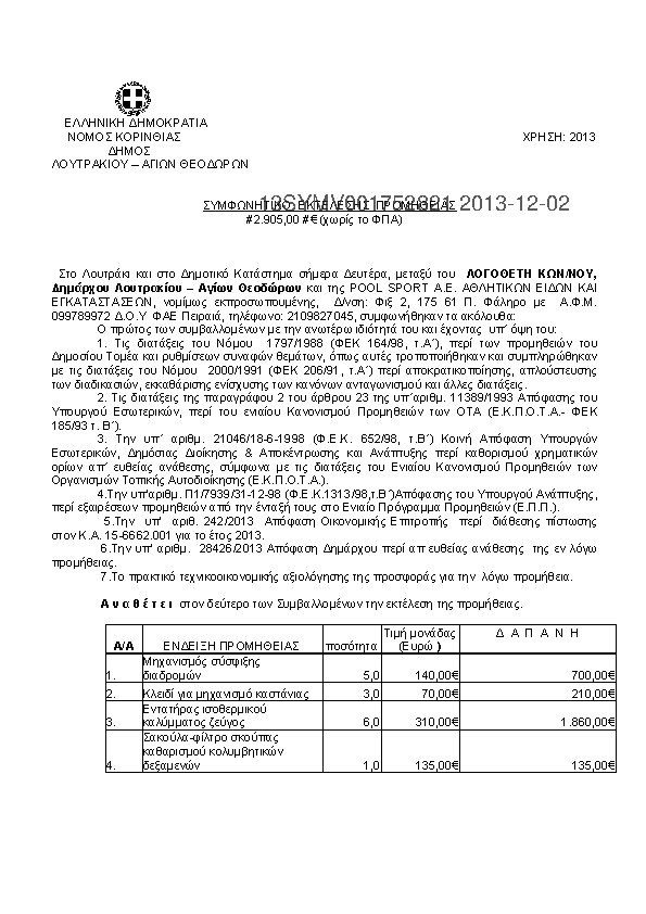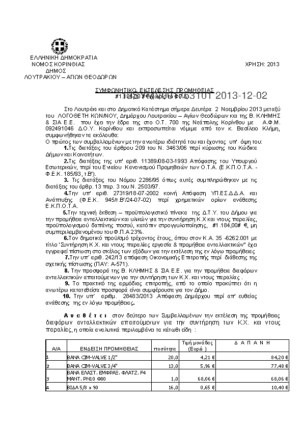 3. ΣΥΜΒΑΣΗ ΠΡΟΜΗΘΕΙΑΣ ΑΝΤΑΛΛΑΚΤΙΚΩΝ ΓΙΑ ΕΠΙΣΚΕΥΗ ΑΥΤΟΚΙΝΗΤΩΝ