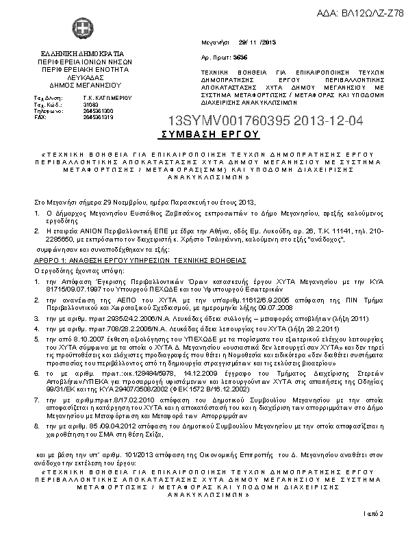 1. ΤΕΧΝΙΚΗ ΒΟΗΘΕΙΑ ΓΙΑ ΕΠΙΚΑΙΡΟΠΟΗΣΗ ΤΕΥΧΩΝ ΔΗΜΟΠΡΑΤΗΣΗΣ ΑΠΟΚΑΤΑΣΤΑΣΗΣ ΧΥΤΑ ΜΕ ΣΜΜ
