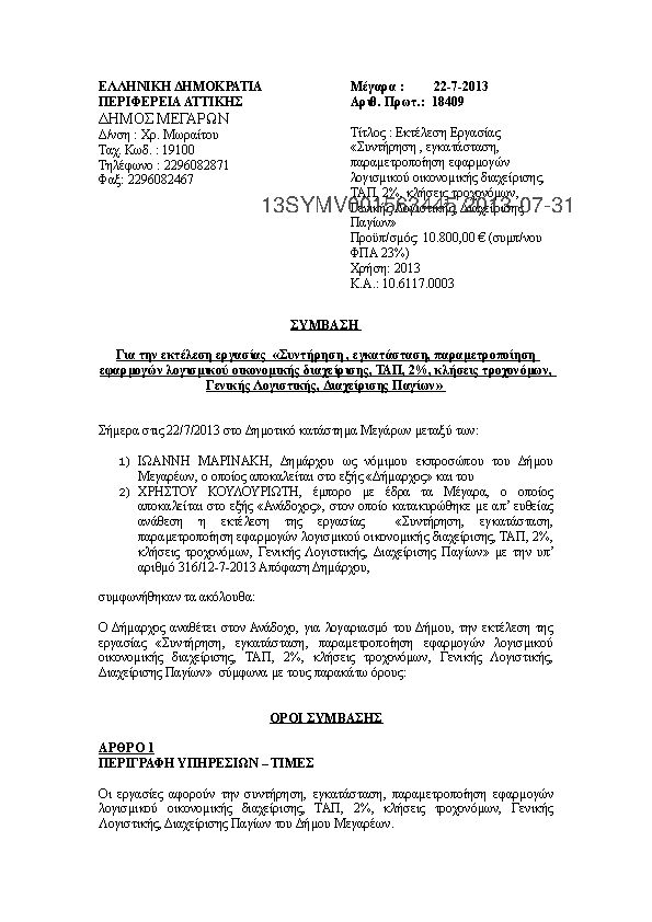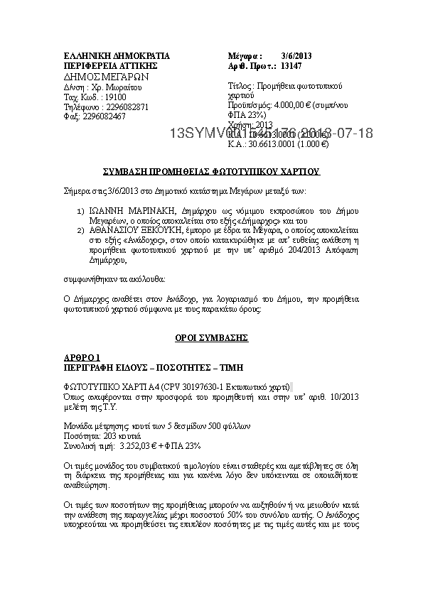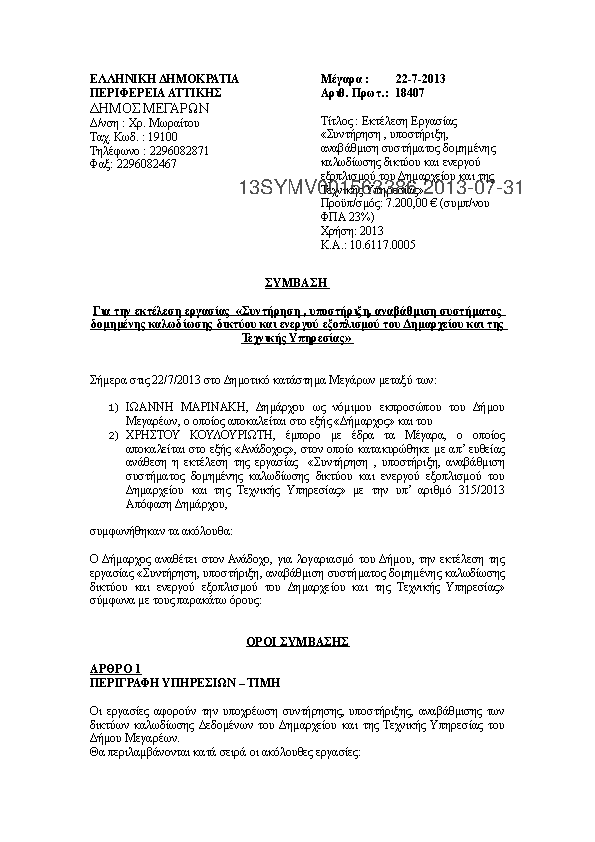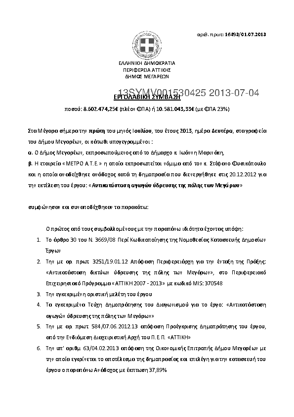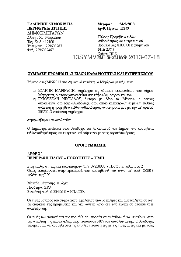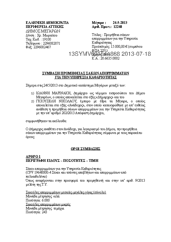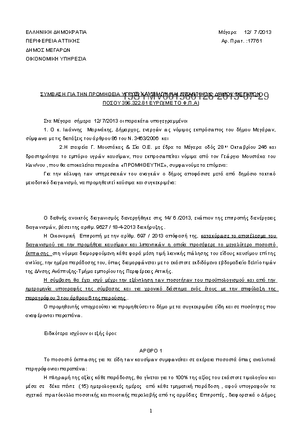 9. ΣΥΜΒΑΣΗ ΓΙΑ ΤΗΝ ΠΡΟΜΗΘΕΙΑ ΥΓΡΩΝ ΚΑΥΣΙΜΩΝ ΚΑΙ ΛΙΠΑΝΤΙΚΩΝ ΔΗΜΟΥ ΜΕΓΑΡΕΩΝ