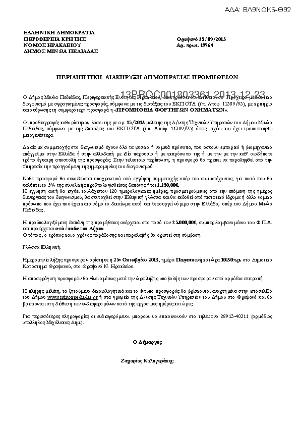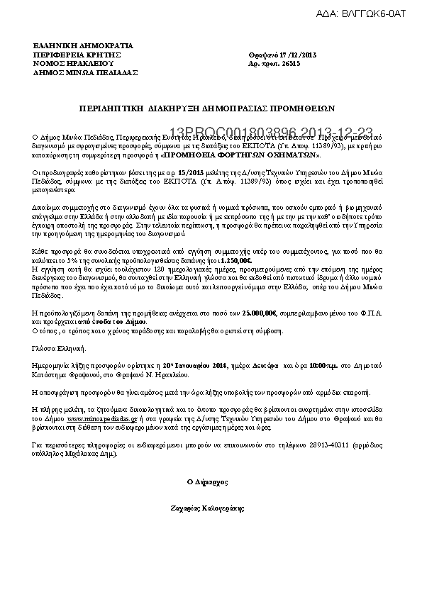 6. ΠΕΡΙΛΗΠΤΙΚΗ ΔΙΑΚΗΡΥΞΗ ΔΗΜΟΠΡΑΣΙΑΣ ΓΙΑ ΤΗΝ "ΠΡΟΜΗΘΕΙΑ ΦΟΡΤΗΓΩΝ ΑΥΤΟΚΙΝΗΤΩΝ"
