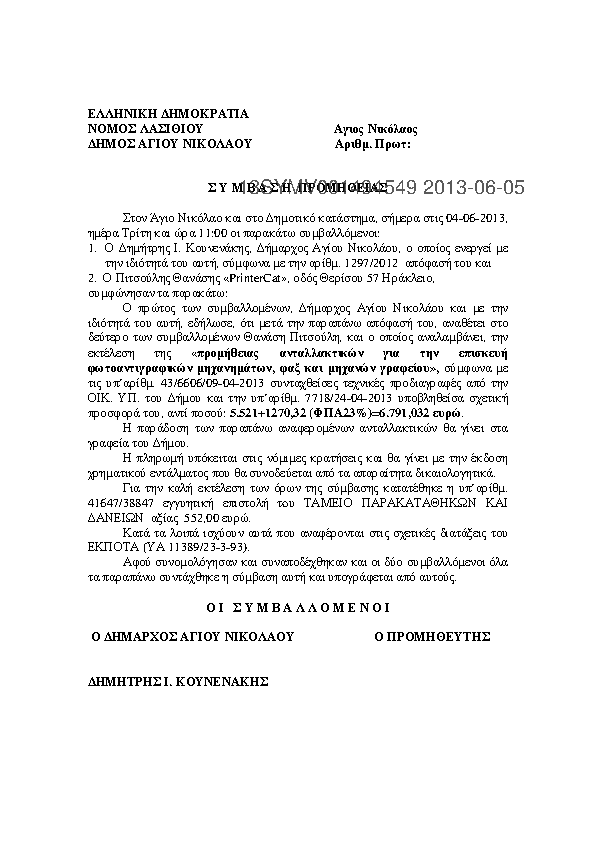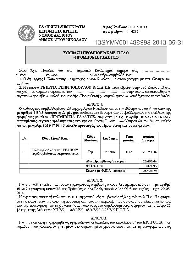 6. ΣΥΜΒΑΣΗ ΠΡΟΜΗΘΕΙΑΣ ΓΑΛΑΤΟΣ ΔΗΜΟΥ ΑΓΙΟΥ ΝΙΚΟΛΑΟΥ